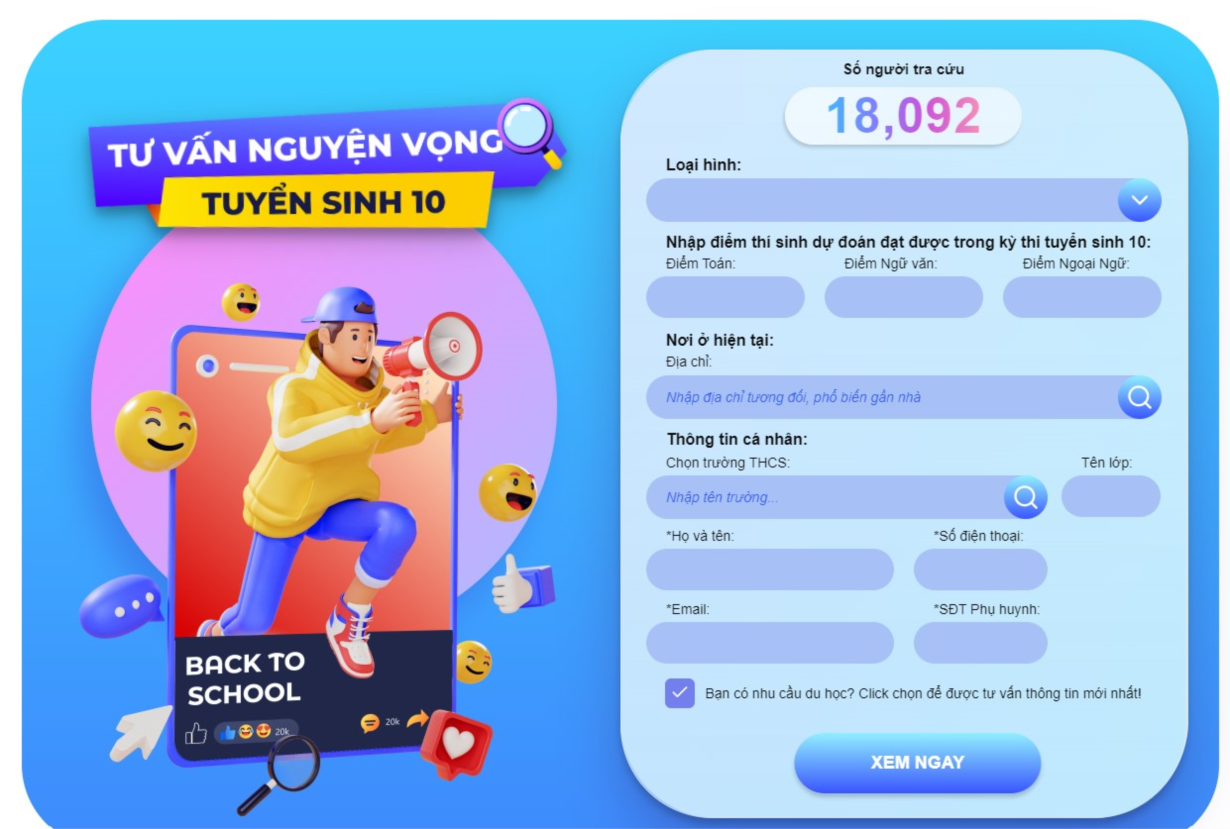 Bước 1: Thực hiện nhập thông tin cá nhân của học sinh. Sau đó, nhấn Xem ngay